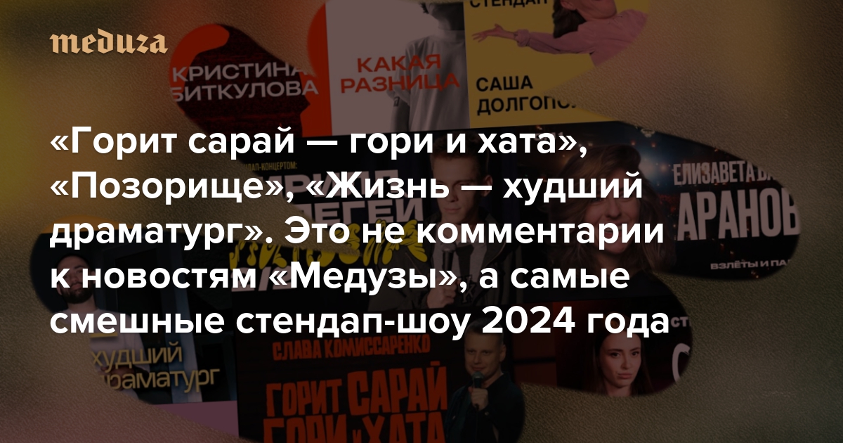 «Горит сарай — гори и хата», «Позорище», «Жизнь — худший драматург» Похоже на комментарии к новостям «Медузы», но нет — это самые смешные стендап-шоу 2024 года. Мы выбрали 11 лучших