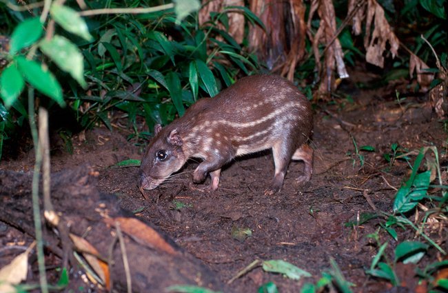 Пака — это грызун, он обитает в Южной Америке. Пака селится возле небольших водоемов, и, в случае опасности, ныряет в воду, в которой может находиться достаточно долго. Внешне эти зверьки напоминают капибару, но с полосатым окрасом. А еще пака умеют очень громко хрюкать и рычать — у них необычное строение скул, которые служат еще и как резонаторы.