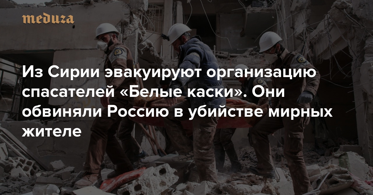 Из Сирии эвакуируют организацию спасателей «Белые каски» Они обвиняли Россию в убийстве мирных жителей. Россия обвиняла их в постановочных съемках