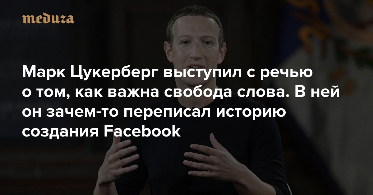 Марк Цукерберг выступил с речью о том, как важна свобода слова В ней он зачем-то переписал историю создания Facebook