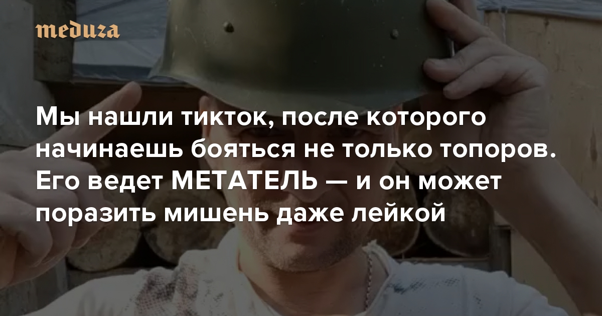 Просто представьте: в тиктоке есть целый аккаунт, посвященный метанию всего подряд — называется он, разумеется, «МЕТАТЕЛЬ» (именно капсом и никак иначе!). Его ведущий втыкает в мишени не только ножи и топоры, а вообще любые подручные средства: монеты, ложки, зонты, швабры, валентинки, совки… Легче перечислить то, что не оказывается приколотым к пенькам и другим поверхностям. Ролики всегда начинаются примерно одинаково: «Кто медальку незаточенную просил [метнуть]? Пожа-а-алуйста, ребята». Метатель повторяет эти просьбы и благодарности из видео в видео. «Есть одна цель — засадить все в мишень!!!», говорится в описании ютьюб-канала Метателя (там, в общем-то, происходит все то же самое, что и в тиктоке). Главное, что цель у блогера есть — и он ее придерживается.