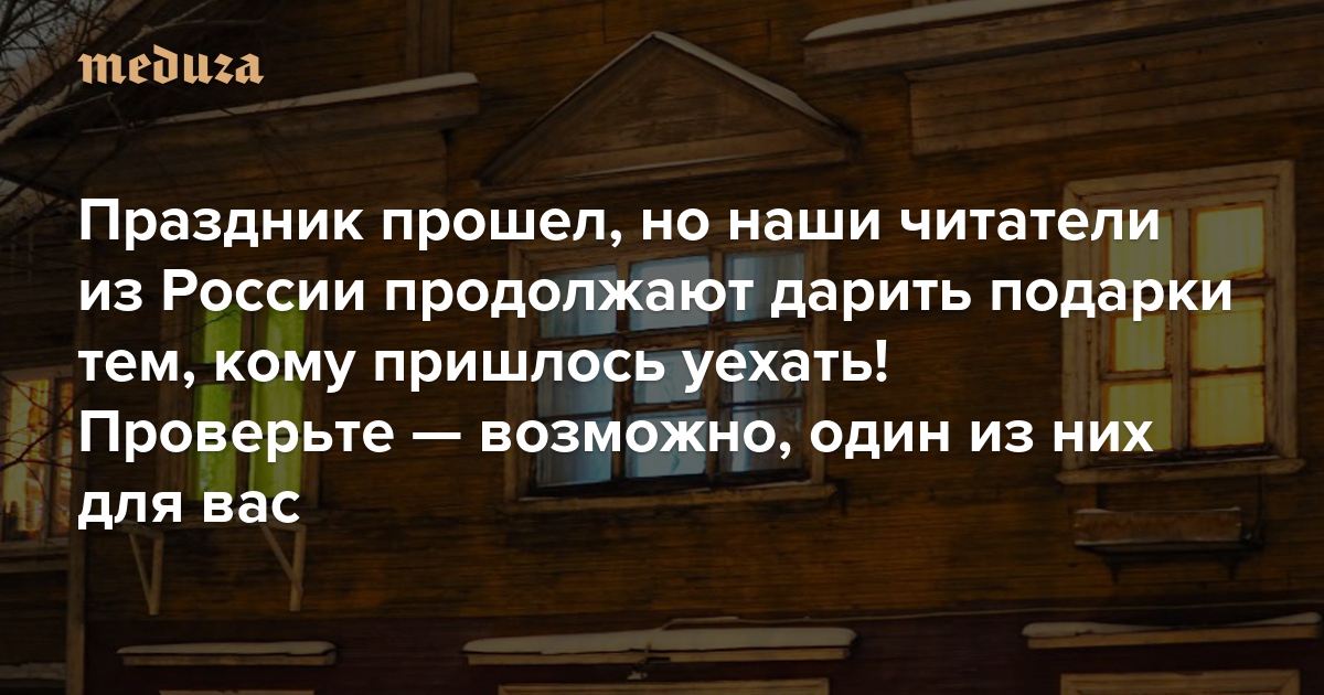 Новогодняя магия «Медузы»: продолжение Праздник прошел, но наши читатели из России продолжают дарить подарки тем, кому пришлось уехать! Проверьте — возможно, один из них для вас