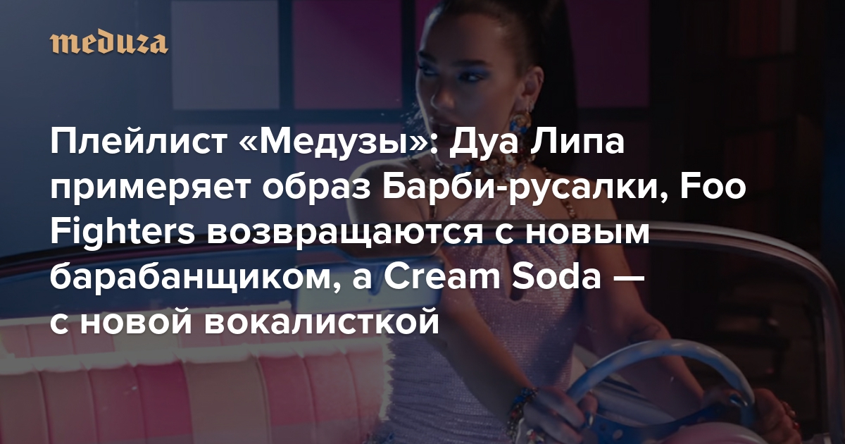 Плейлист «Медузы»: Дуа Липа примеряет образ Барби-русалки, Foo Fighters возвращаются с новым барабанщиком, а Cream Soda — с новой вокалисткой
