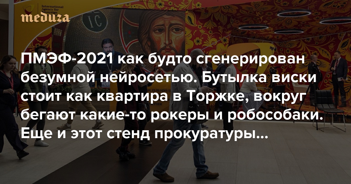 ПМЭФ-2021 как будто сгенерирован безумной нейросетью Бутылка виски стоит как квартира в Торжке, вокруг бегают какие-то рокеры и робособаки. Еще и этот стенд прокуратуры…