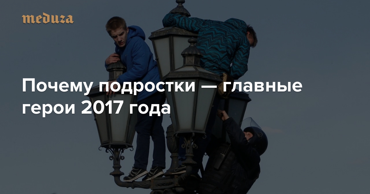 26 марта 2017 года по всей России прошли митинги против коррупции. На улицы вышли в общей сложности десятки тысяч человек — протестная акция стала самой массовой с 2012 года. Самой удивительной чертой этого протеста стала не столько его массовость, сколько возраст митингующих — среди участников акции было необычайно много школьников и студентов. Сразу после митингов старшеклассники и студенты стали главным предметом обсуждений в СМИ и социальных сетях. «Медуза» объясняет, как подростки неожиданно стали главными героями 2017 года.