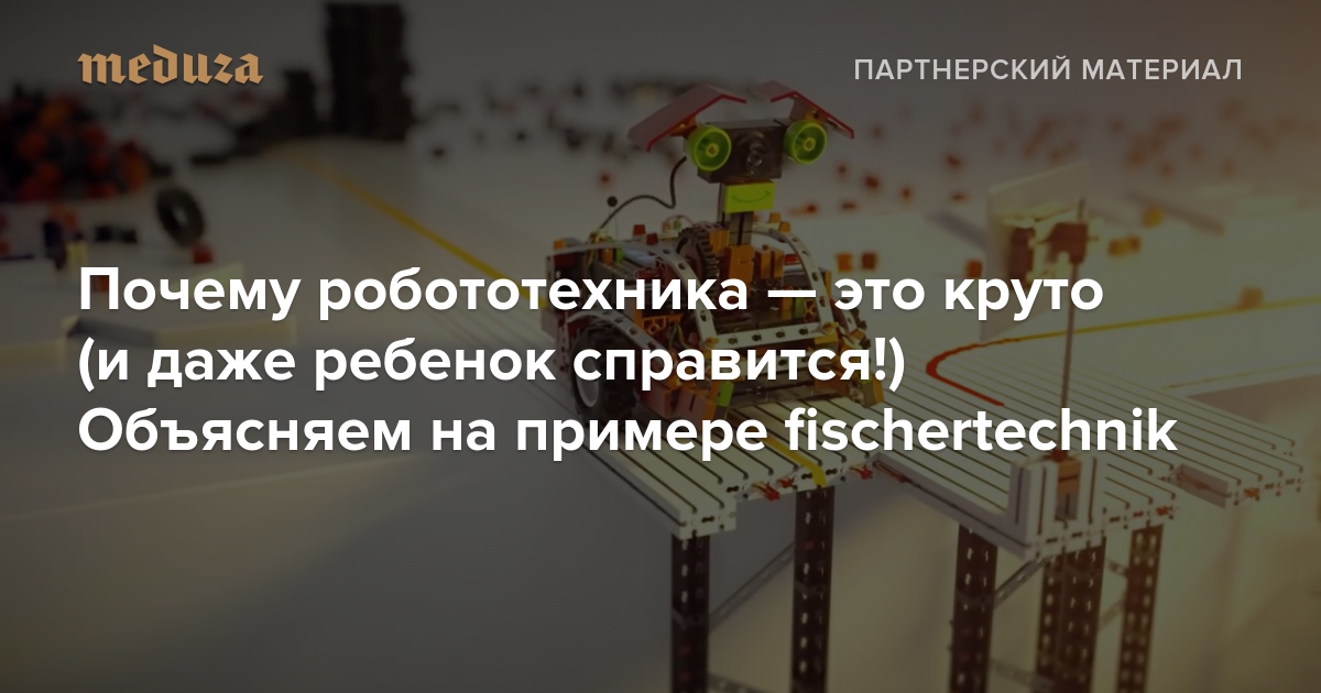 Конструкторы fischertechnik производятся в Германии. К некоторым сериям начиная с «Профи» прилагаются рабочие тетради с информацией о предмете и заданиями — их можно скачать здесь. Узнать больше о конструкторах fischertechnik можно в блоге. А еще — принять участие в творческом конкурсе, который продлится до 10 января 2019 года. Для читателей «Медузы» до 1 января (включительно!) скидка 10% на наборы fischertechnik по промокоду meduza.