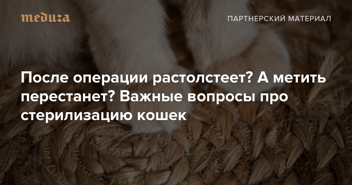 В первую очередь это зависит от метода стерилизации — их несколько, и наиболее подходящий поможет выбрать врач. Но если коротко, коты обычно прекращают метить территорию, если во время операции им удаляют яички. Правда, случается, что организм животного даже после операции продолжает активно вырабатывать половые гормоны с помощью надпочечников. Но это бывает довольно редко. Аналог такой операции у кошек — удаление яичников. После него кошка, как правило, перестает громко мяукать и вести себя агрессивно. Впрочем, иногда животные метят по другим причинам. Например, стресс при идиопатическом цистите может провоцировать кошек и котов ходить в туалет в неположенном месте, это не связано с половым поведением.