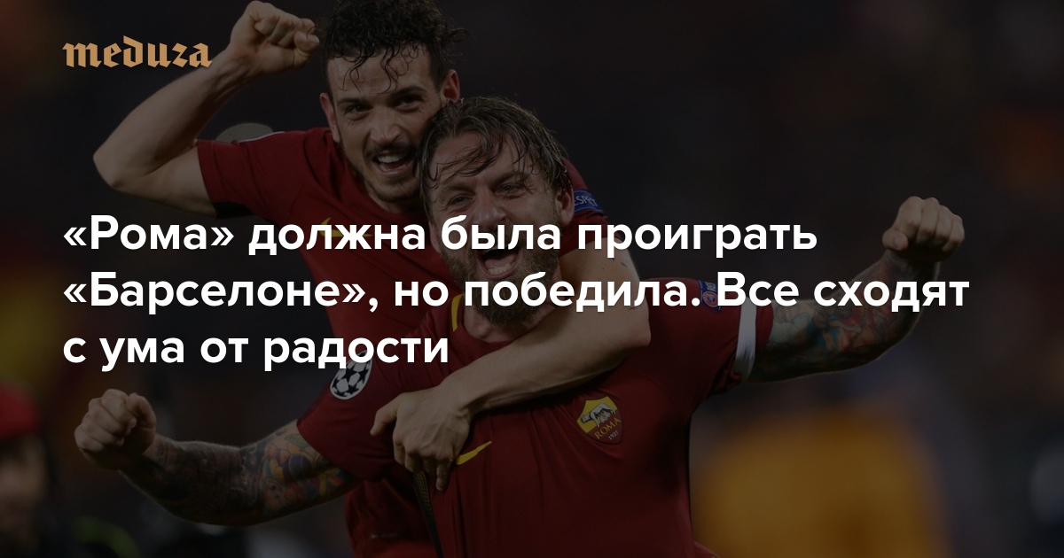 Итальянский футбольный клуб «Рома» смог по итогам двух матчей обыграть «Барселону» и впервые с сезона 1983/84 выйти в полуфинал Лиги чемпионов. Радость от победы была особенно сильна, учитывая, что первый матч итальянцы проиграли со счетом 4:1.