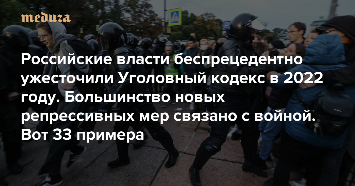 Российские власти беспрецедентно ужесточили Уголовный кодекс в 2022 году. Большинство новых репрессивных мер связано с войной Вот 33 примера — от «фейков» про армию до добровольной сдачи в плен
