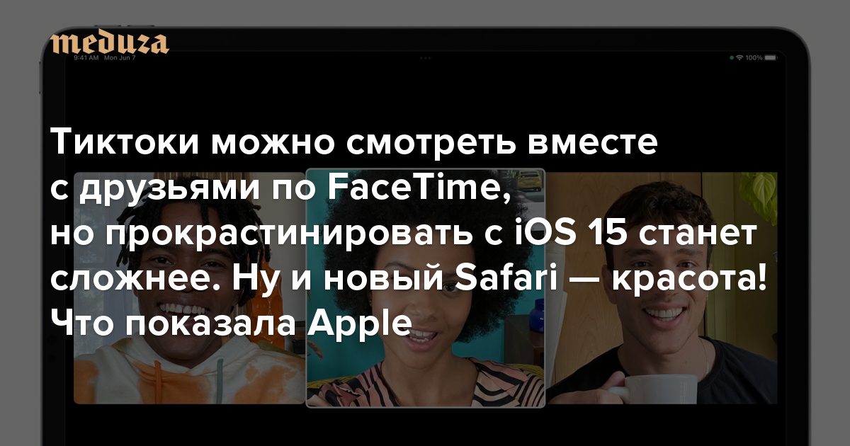 Тиктоки можно смотреть вместе с друзьями по FaceTime, но прокрастинировать с iOS 15 станет сложнее. Ну и новый Safari — красота! Что Apple показала на конференции WWDC 2021