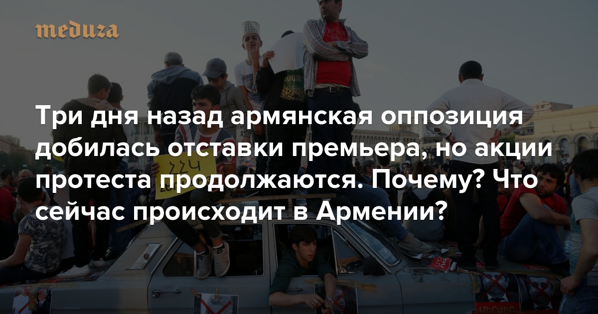 Армянская оппозиция добилась отставки премьера, но акции протеста продолжаются. Почему?