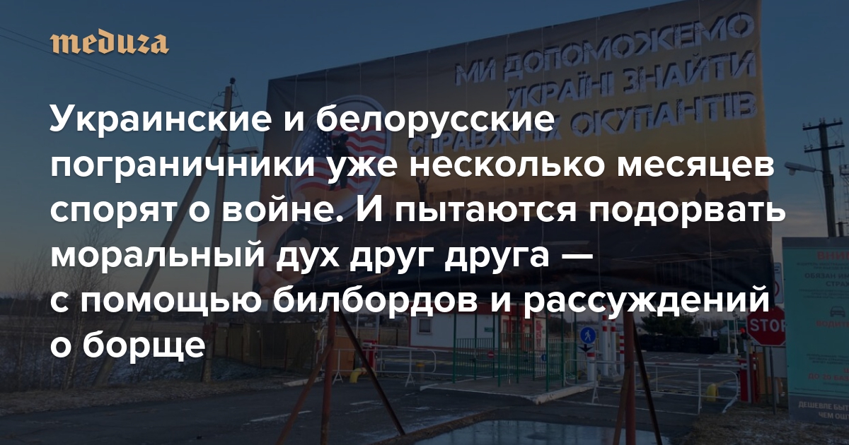 Украинские и белорусские пограничники уже несколько месяцев спорят о войне. И пытаются подорвать моральный дух друг друга — с помощью билбордов и рассуждений о борще Вот как это выглядит