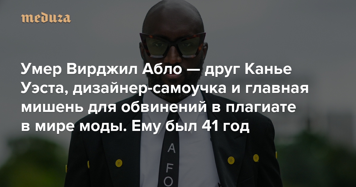 Virgil was here Умер Вирджил Абло — друг Канье Уэста, дизайнер-самоучка и главная мишень для обвинений в плагиате в мире моды. Ему был 41 год