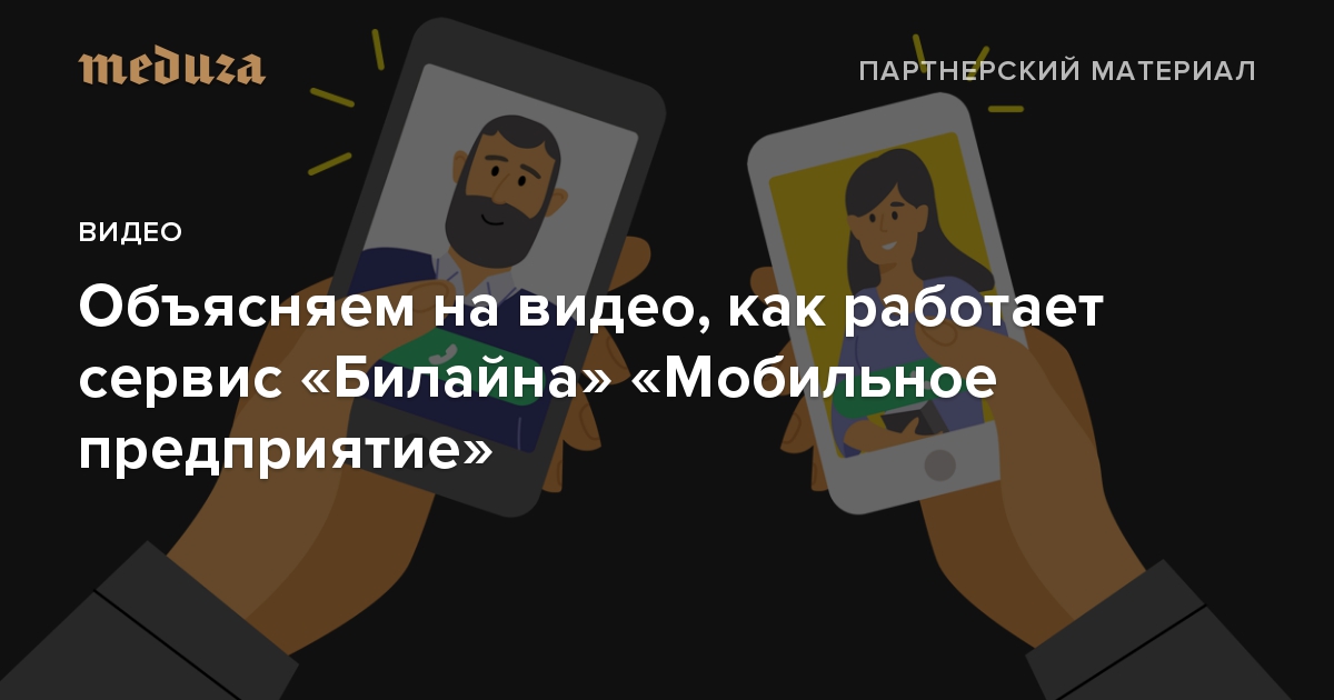 Это очень короткое видео, оно длится две минуты, и все оно — о сервисе «Билайна» «Мобильное предприятие». Сервис сделан для тех, у кого много клиентов и эти клиенты вам звонят. Подробности — после кнопки Play.