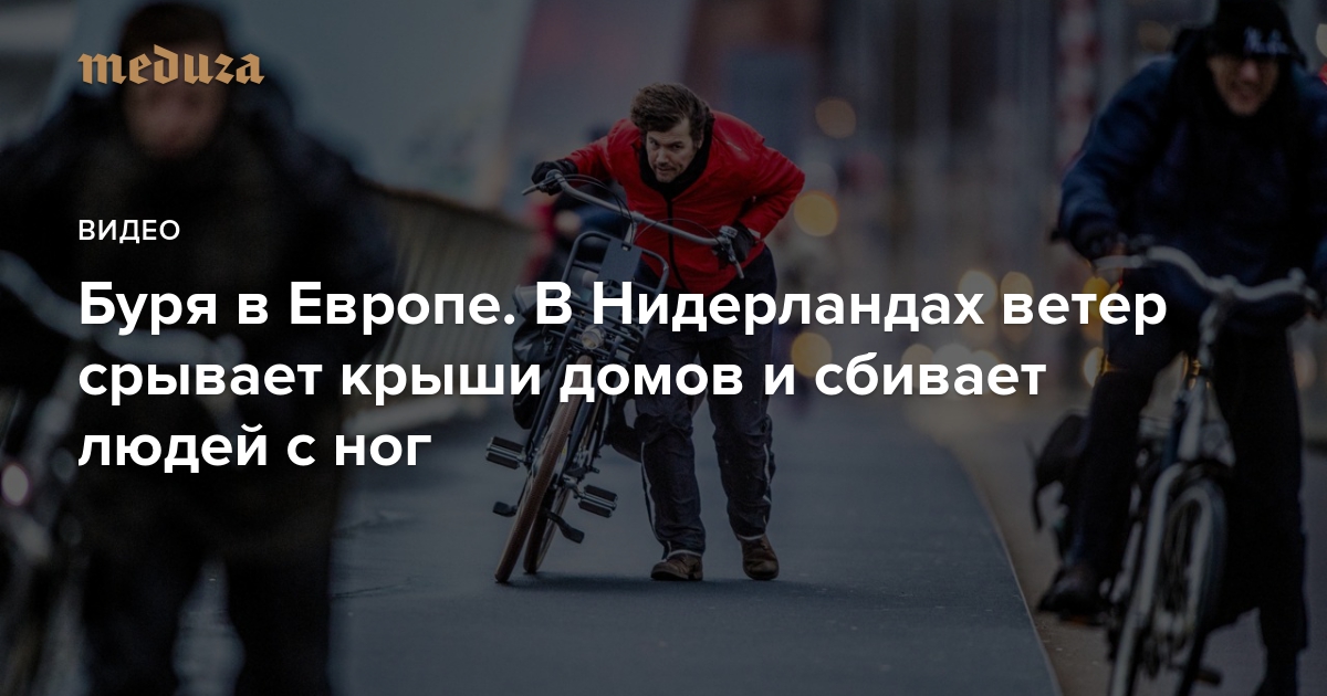 Буря в Европе В Нидерландах ветер срывает крыши домов и сбивает людей с ног. Видео