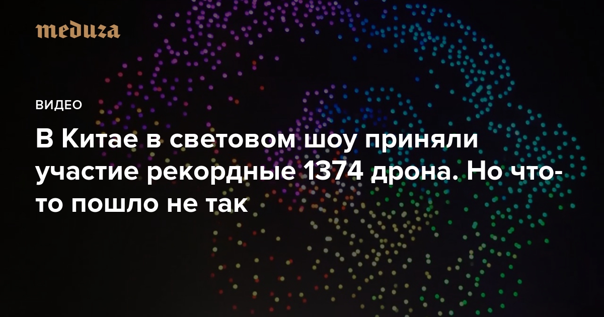 В Китае в световом шоу приняли участие рекордные 1374 дрона. Но что-то пошло не так