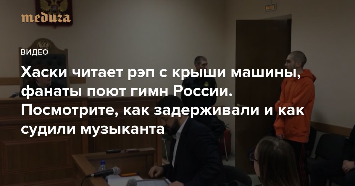 Хаски читает рэп с крыши машины, фанаты поют гимн России. Посмотрите, как задерживали и как судили музыканта