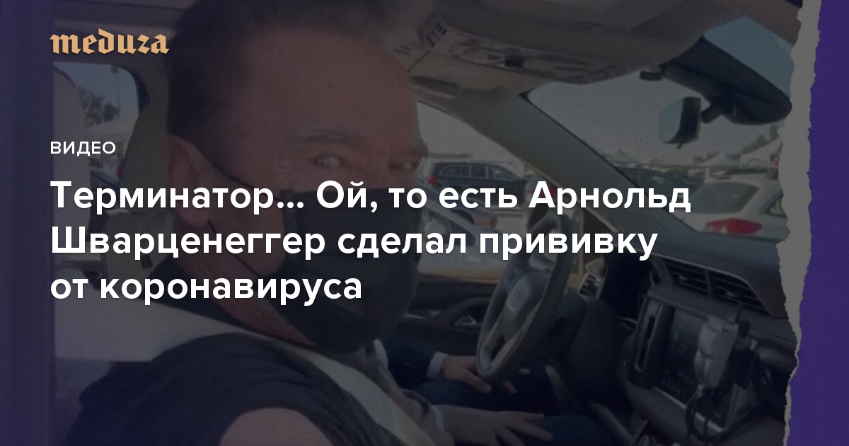 Актер и бывший губернатор штата Калифорния Арнольд Шварценеггер сделал прививку от коронавируса. Процедуру он прошел прямо в автомобиле — и попутно вспомнил сразу две легендарные фразы персонажей, которых он сыграл в кино.