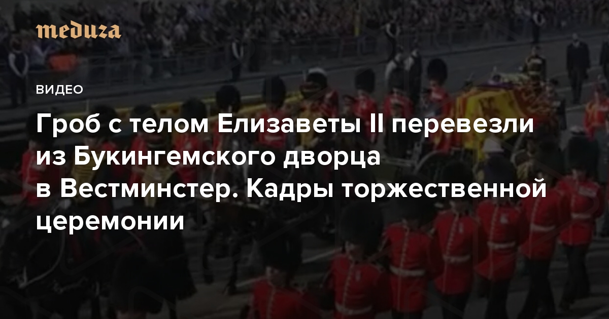 14 сентября гроб с телом Елизаветы II перевезли из Букингемского дворца в Вестминстер, где следующие пять дней, до утра 19 сентября, все желающие смогут проститься с королевой Великобритании. Гроб с телом Елизаветы сопровождал почетный караул, в церемонии участвовали король Карл III, принцы Уильям и Гарри и другие представители королевской семьи.