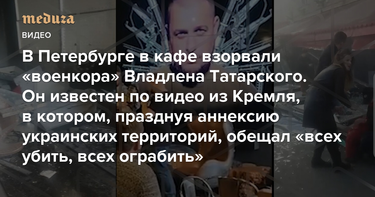 В Петербурге в кафе взорвали «военкора» Владлена Татарского Он известен по видео из Кремля, в котором, празднуя аннексию украинских территорий, обещал «всех убить, всех ограбить»