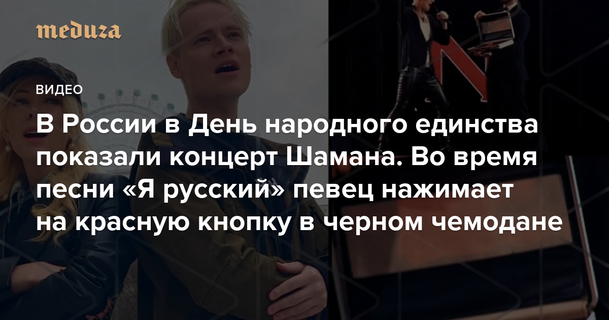 В России в День народного единства показали концерт Шамана. Во время песни «Я русский» певец нажимает на красную кнопку в черном чемодане