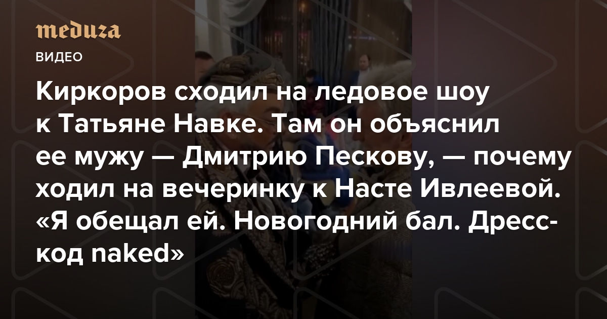 Киркоров сходил на ледовое шоу к Татьяне Навке. Там он объяснил ее мужу — Дмитрию Пескову, — почему ходил на вечеринку к Насте Ивлеевой «Я обещал ей. Новогодний бал. Дресс-код naked»