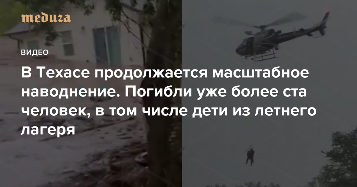 Из-за сильных ливней в начале июля в Техасе началось наводнение. Вода снесла дома, разрушила мосты и дороги. По данным американских СМИ, погибли уже более 100 человек. В том числе 27 детей и вожатых летнего лагеря для девочек. Десятки людей числятся пропавшими без вести. Поисково-спасательные работы продолжаются. Всего в зоне бедствия по-прежнему находятся около 50 тысяч человек. Как сообщает ABC, местные власти хотели улучшить систему оповещения при наводнениях и почти десять лет искали подрядчика. Весной 2025-го компанию наконец нашли, но неизвестно, успела ли она выполнить работу. 11 июля в Техас собирается приехать Дональд Трамп.
